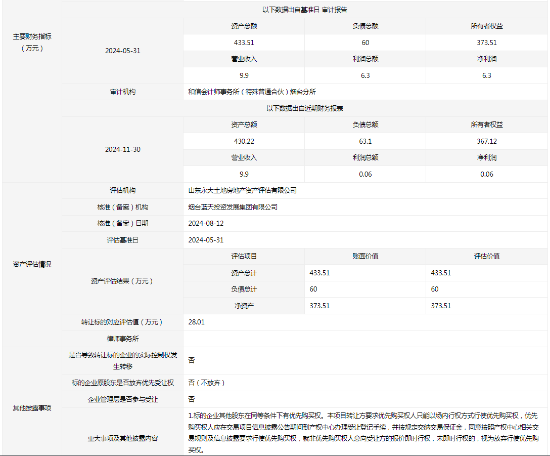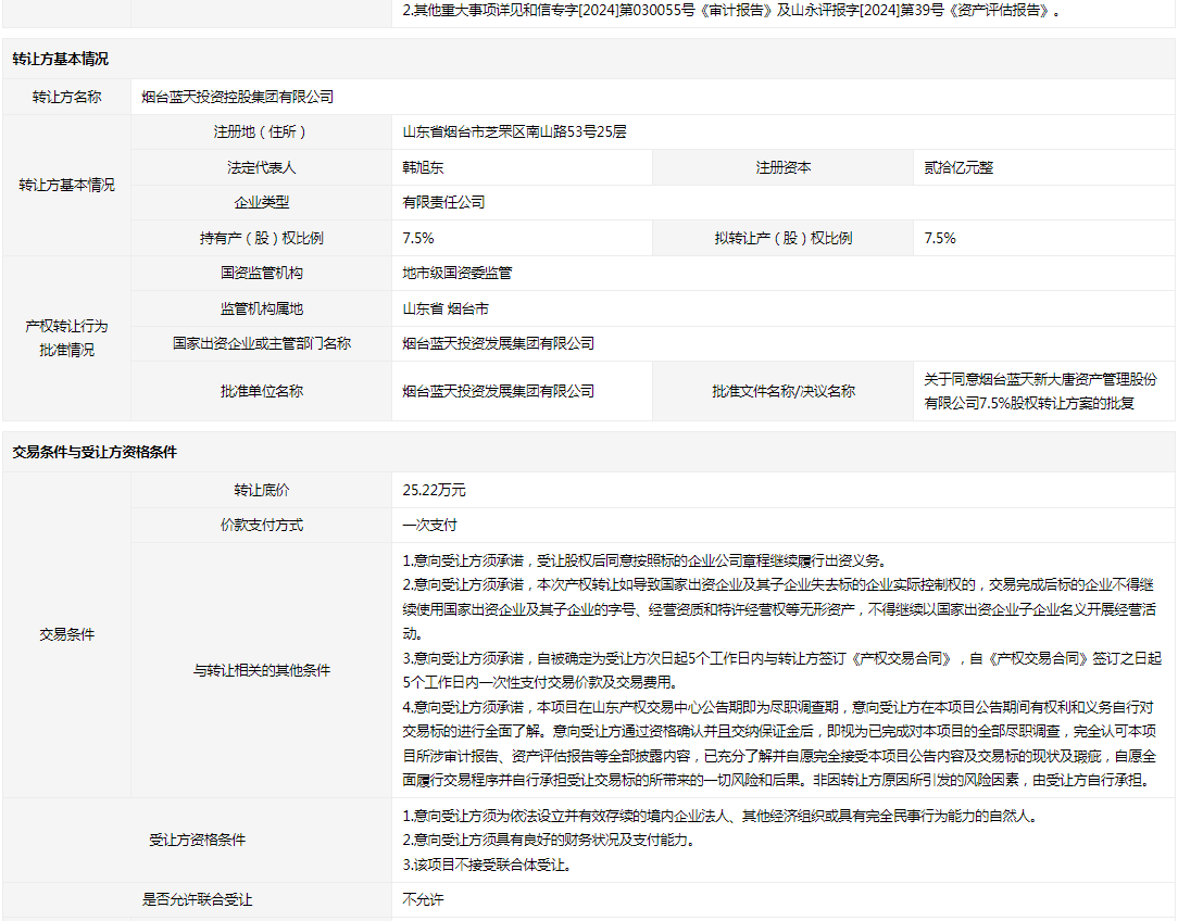 轉(zhuǎn)讓方:煙臺藍(lán)天投資控股集團(tuán)有限公司