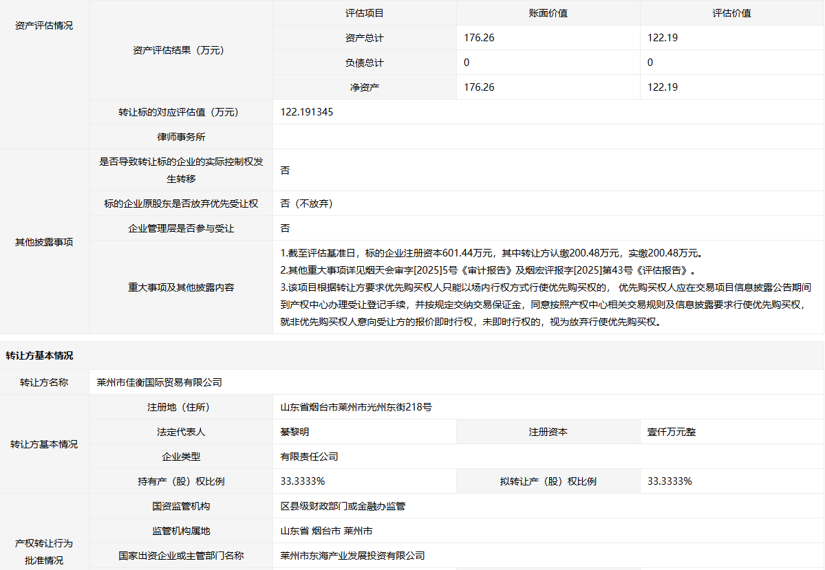 萊州市海之運(yùn)石油化工有限公司33.3333%國有股權(quán)