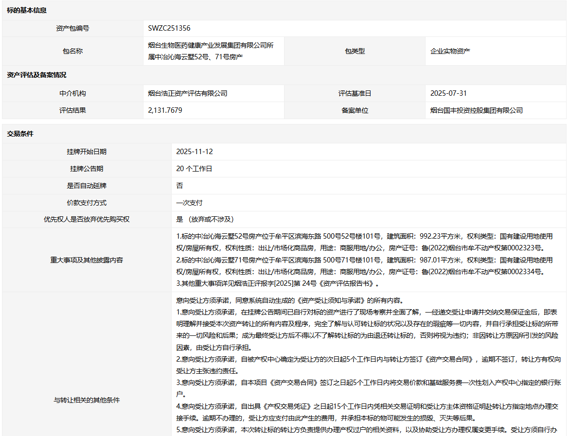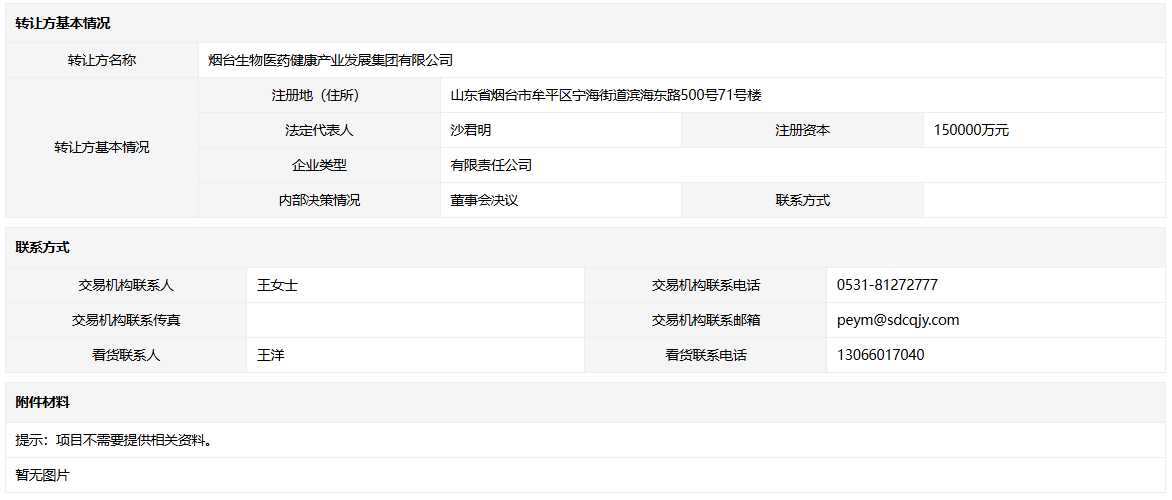 • 轉(zhuǎn)讓方:煙臺生物醫(yī)藥健康產(chǎn)業(yè)發(fā)展集團(tuán)有限公司