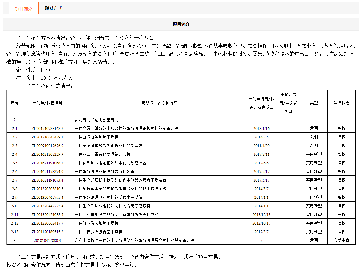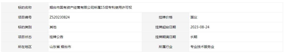 煙臺市國有資產(chǎn)經(jīng)營有限公司所屬15項專利使用許可權